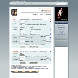 Références MDRD Ann Intern Med. Using standardized serum creatinine values in the modification of diet in renal disease study equation for estimating glomerular filtration rate. Levey AS, Stevens LA, Schmid CH et al. Chronic Kidney Disease Epidemiology Collaboration (CKD-EPI) A New Equation to Estimate Glomerular Filtration Rate. Vous pouvez ainsi effectuer vos calculs de tous les jours en toute simplicité.